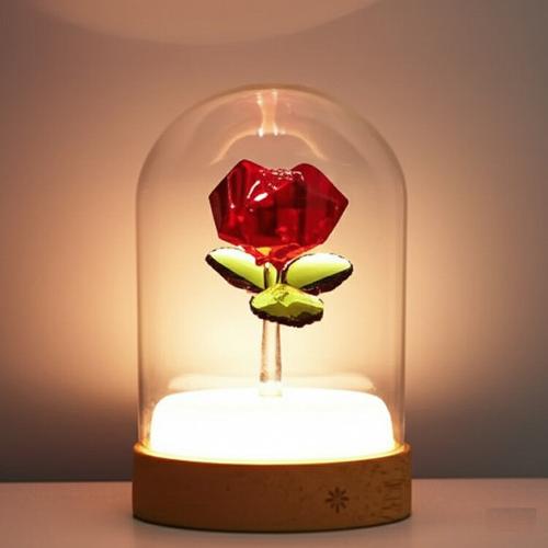 組件內容:櫸木木座x1 (含水晶玫瑰花束x1)、玻璃罩×1、USB線×1