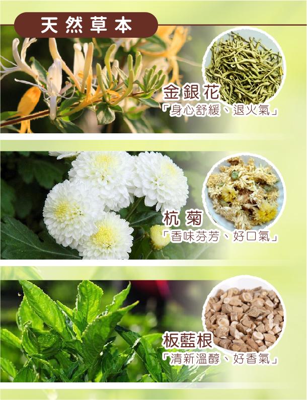 4.內容物名稱(食品成分;用品材質): 乾杭菊,金銀花,板藍根,甘草