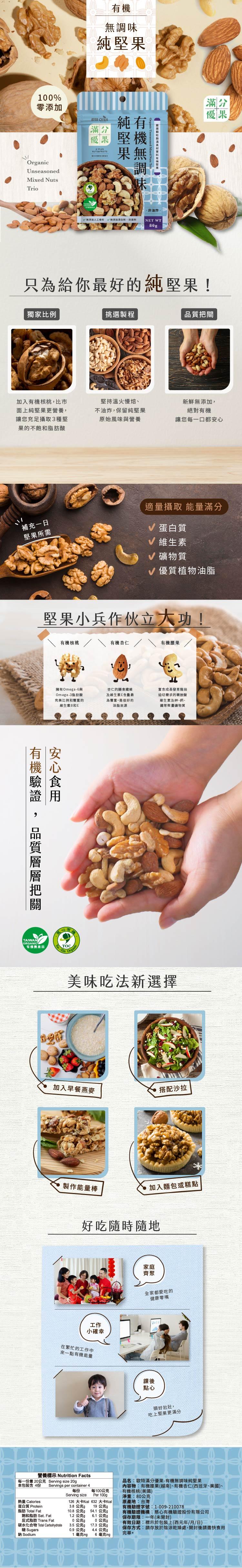 - 有機無調味純堅果(80g/包) 剩餘 6 份