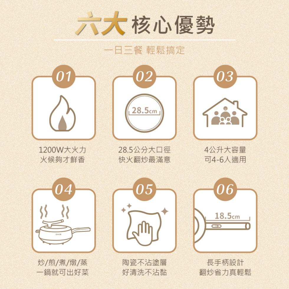 免運 DIKE 4L陶瓷多功能電炒蒸鍋 HKE130WT