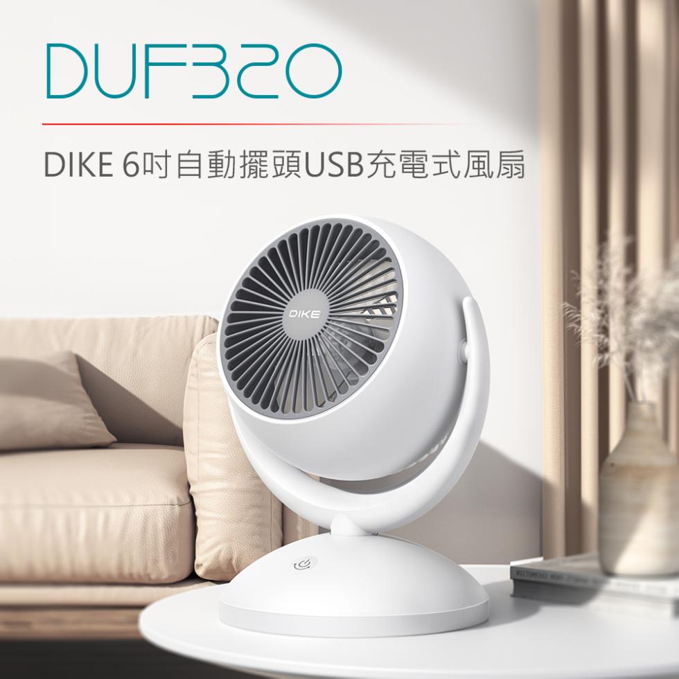 免運 DIKE 6吋自動擺頭USB充電式風扇 DUF320WT 2入組