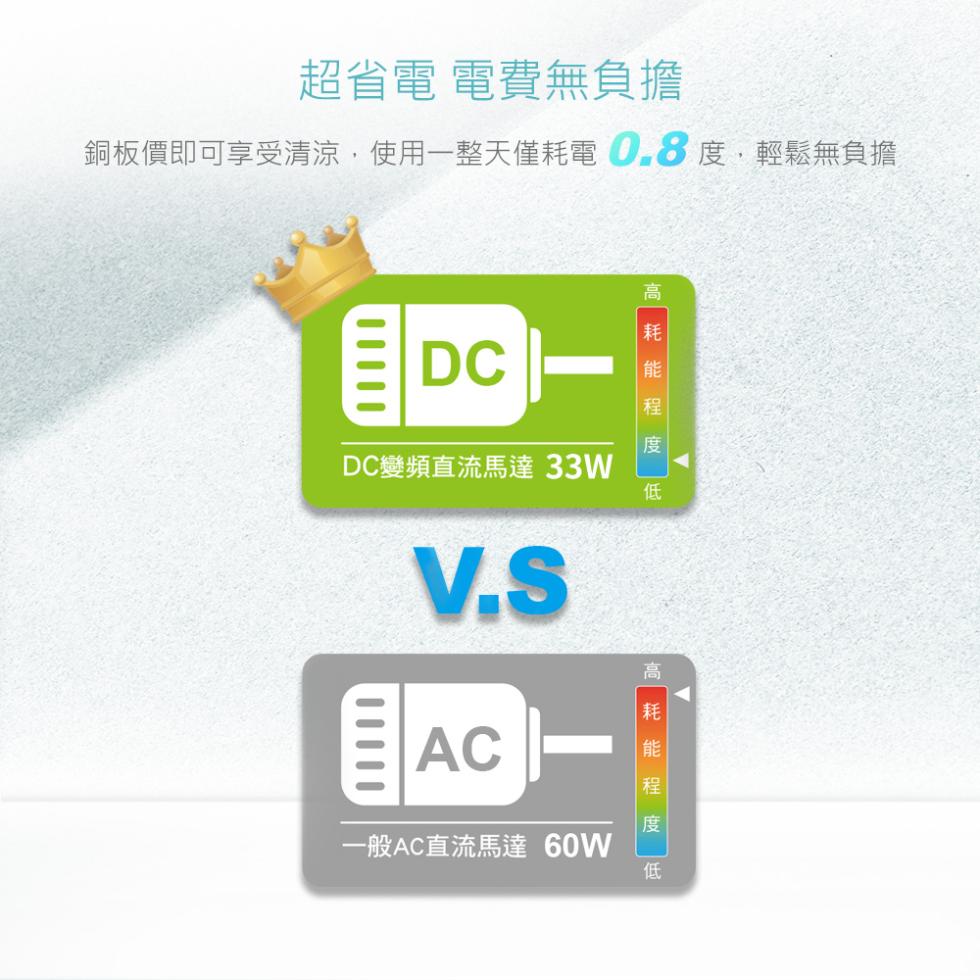 DC變頻直流馬達,最大風速<50dB,不僅安靜低噪音更省電