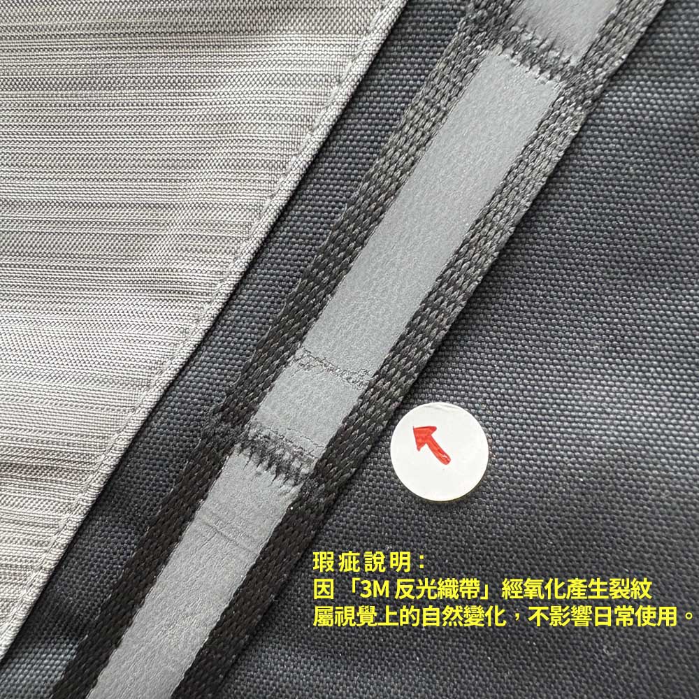 包款整體功能與外觀正常,但因 「3M 反光織帶」經氧化產生裂紋,屬視覺上的自然變化,不影響日常使用。