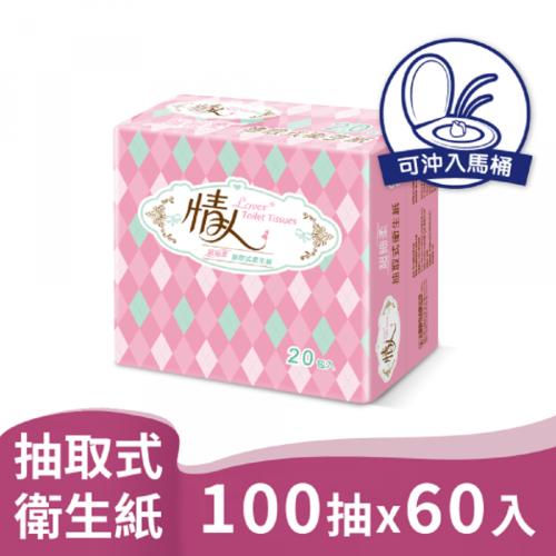 免運 情人衛生紙抽取式100抽20包3串共60入/箱 產品可沖入馬桶 易分散不堵塞