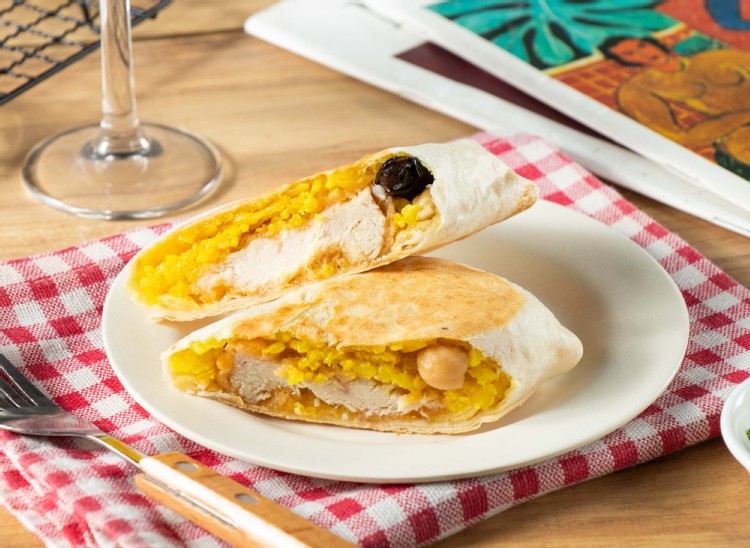 表面乾烙至金黃微焦的捲餅香酥中帶着韌勁,捲裹富含綿密香氣與迷人甜味的鷹嘴豆,