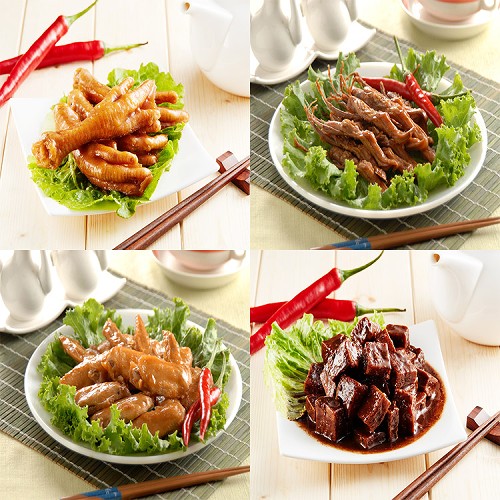 香Q雞爪凍(原味) /香Q雞爪凍(辣味)/老滷豆干/雞翅凍/鴨舌頭/醬香翅腿/蒜味毛豆/米血糕