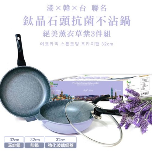 免運 【韓國ECORAMIC】鈦金岩抗菌不沾鍋 經典超值3件組