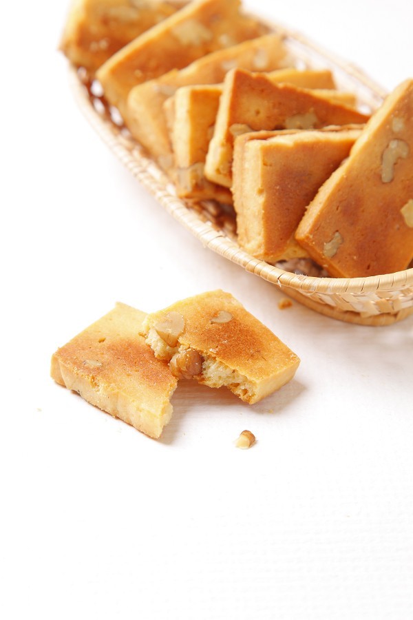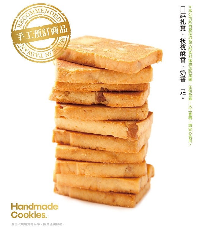 幸福鮮乳核桃-以大量牛奶粉特殊工法製作,降低麵粉比例,口感酥鬆不過硬,牛奶粉取代麵粉,有效降低熱量,牛奶香氣更自然,搭配新鮮核桃,口感更豐富 營養加倍!