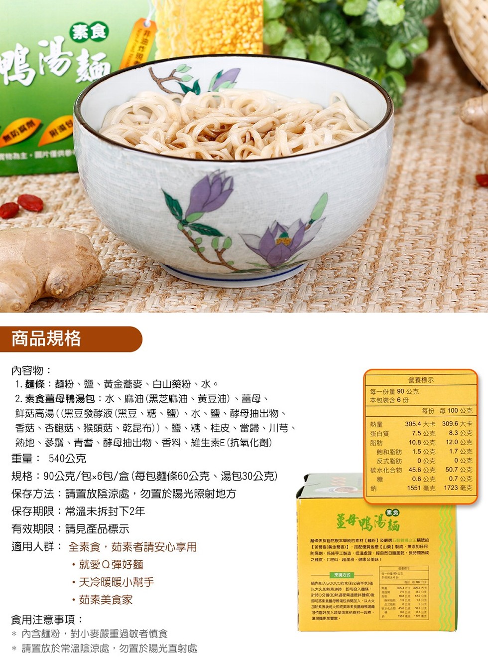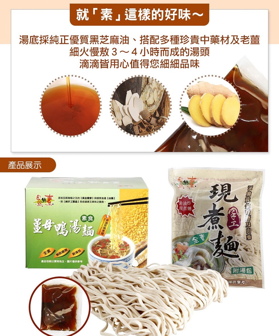 免運 【自然緣素】素食薑母鴨手工湯麵(全素)