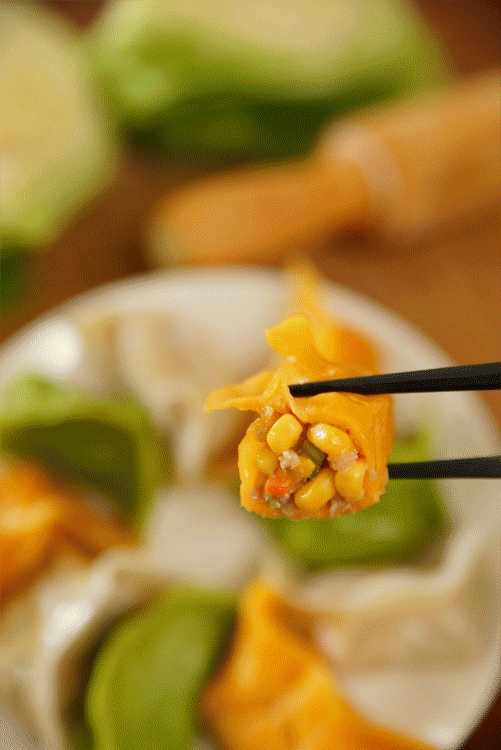 成 份:高麗菜、韭菜、泡菜、玉米、麵粉、豬肉、蔥、醬油、菠菜汁、紅蘿蔔汁、蝦肉'、雞蛋、香油、鹽、白胡椒、豬油(紅蔥頭、胡蘿蔔、洋蔥)、高湯(豬皮、豬骨、雞骨)、米酒、糖。
