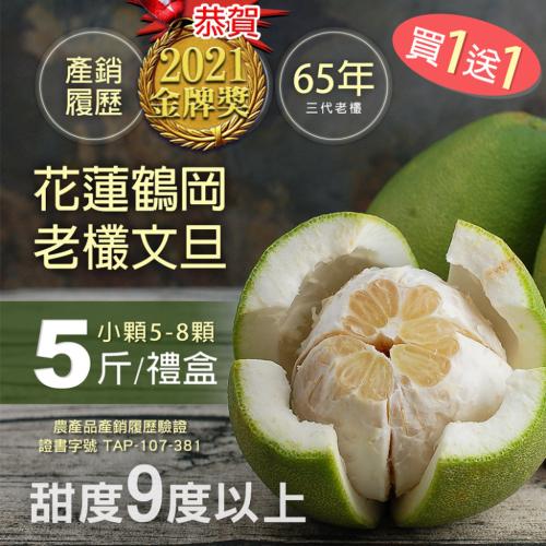 免運 YA5140【築地一番鮮】買1送1組-65年金牌獎老欉花蓮鶴岡文旦5斤禮盒