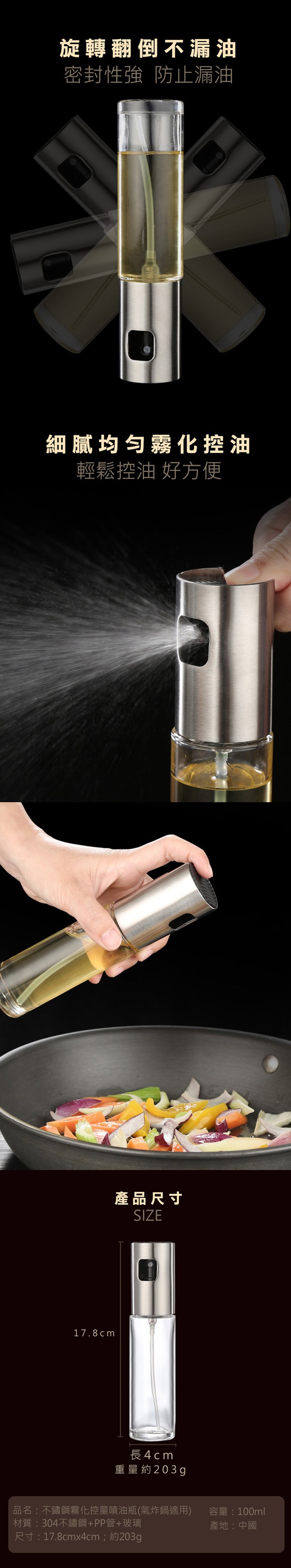 品名:不鏽鋼霧化控量噴油瓶(氣炸鍋適用)100ml