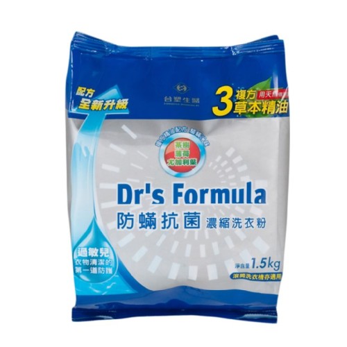 品名:《台塑生醫》Dr's Formula複方升級-防蹣抗菌濃縮洗衣粉補充包1.5kg