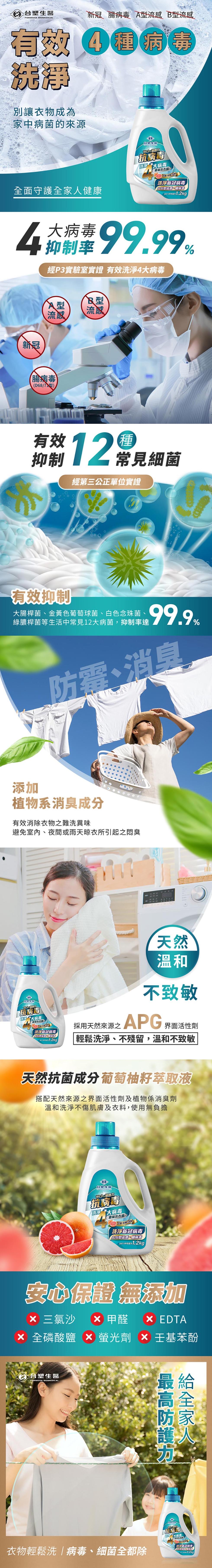 •添加高效「葡萄柚籽萃取」抗菌成分能有效抑制新冠病毒、A型流感(H1N1)、B型流感(維多利亞株)、腸病毒(71型、D68)等四大病毒及大腸桿菌、金黃色葡萄球菌、白色念珠菌、綠膿桿菌等生活中常見細菌。