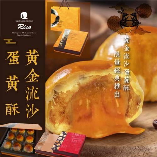 免運 【RICO】黃金流沙蛋黃酥中秋禮盒(9入)(附專屬提袋)(蛋奶素)