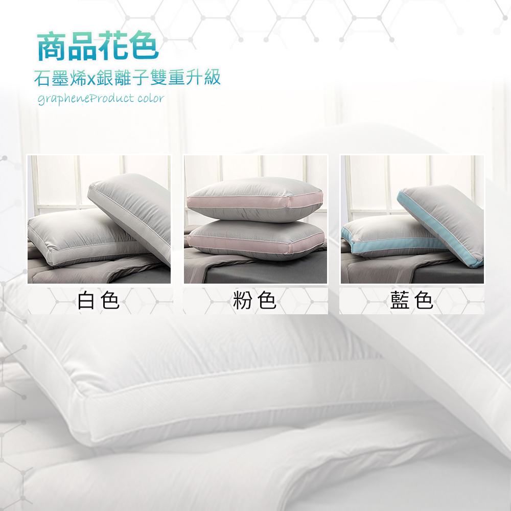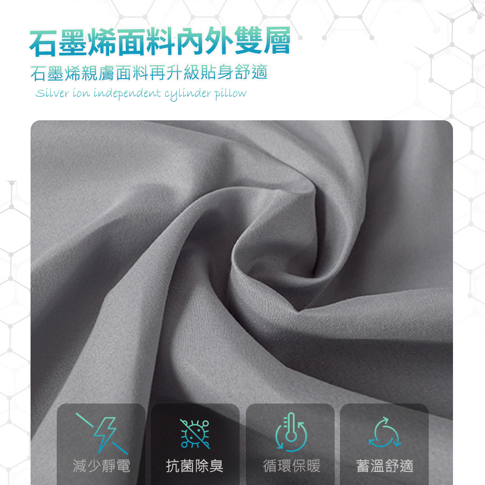 蜂巢透氣立體邊設計,使空氣流通更佳,避免悶熱。銀離子石墨烯結合,具有抗菌功能,保持枕頭衛生。