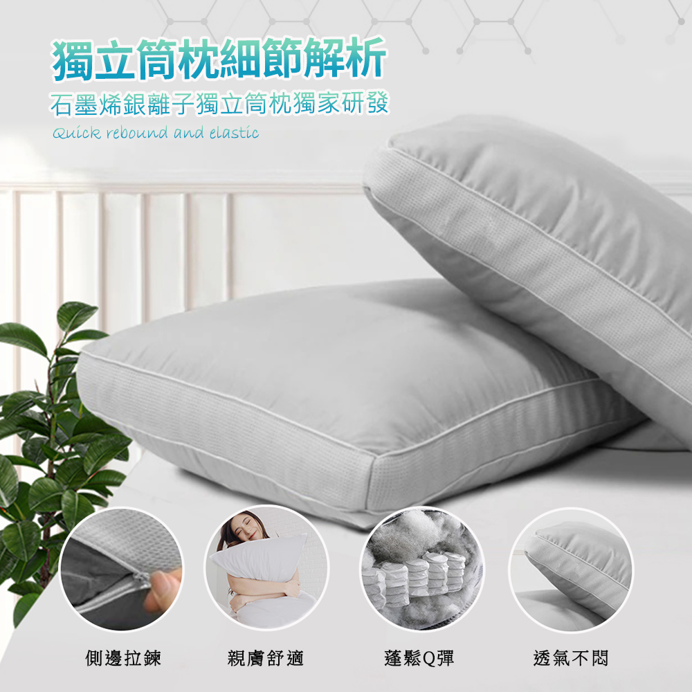 雙層石墨烯銀離子可拆洗獨立筒枕是您提升睡眠品質的最佳選擇。內外雙層石墨烯設計,搭配高含量石墨烯表布,提供卓越透氣性與舒適感。