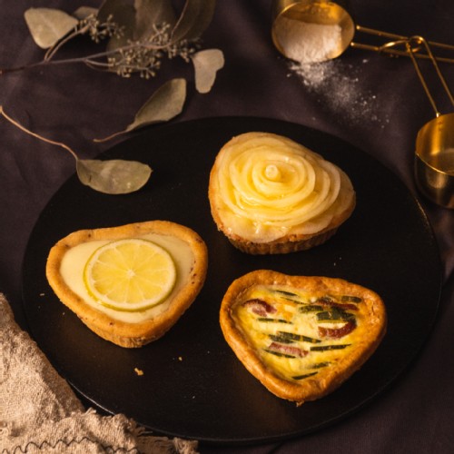 - 品項: 臘肉派 \ 牛肉派 \ 檸檬派 \ 紅豆鹹蛋黃派(蛋奶素) \ 蘋果派(蛋奶素) \ 地瓜派(蛋奶素) \ 時蔬派(蛋奶素) \ 蕈菇派(五辛素)