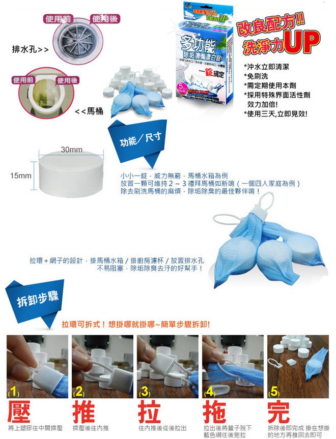 產品名稱:金德恩 台灣製造 排水孔&馬桶除垢二合一清潔漂白錠