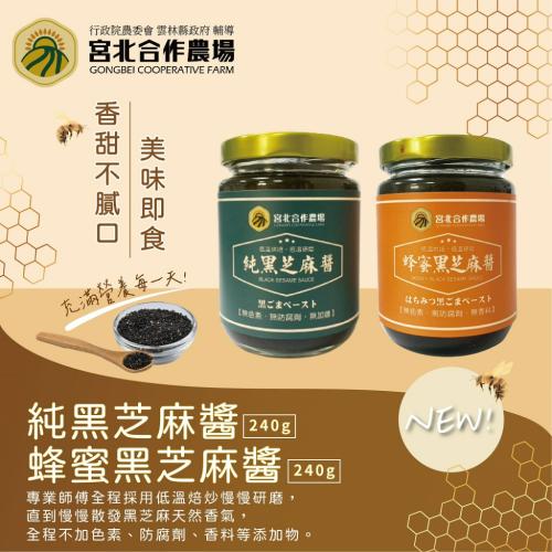 免運 【保證責任宮北合作農場】蜂蜜黑芝麻醬(240g)+純黑芝麻醬(240g)