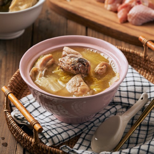 • 水、雞骨、雞爪、豬骨、雞肉、白菜、花膠、火腿片{豬肉、雞肉、水、馬鈴薯澱粉、大豆蛋白、鹽、糖、麥芽糊精、蒜粉、胡椒、磷酸二澱粉、辛稀基丁二酸鈉澱粉、多磷酸鈉、焦磷酸鈉(無水)、偏磷酸鉀、異抗壞血酸鈉(抗氧化劑)、亞硝酸鈉、可食用色素黃色4號、紅色6號、7號}、雞粉{鹽、麥芽糊精、L-麩酸鈉、糖、玉米澱粉、雞肉粉(雞肉、迷迭香萃取物)、香料、酵母萃取物(酵母萃取物、鹽)、雞油(雞油、迷迭香萃取物)、棕櫚油、調味劑(5’-次黃嘌呤核苷磷酸二鈉、5’-鳥嘌呤核苷磷酸二鈉)、白胡椒}、干貝、薑、蔥、米酒、鹽