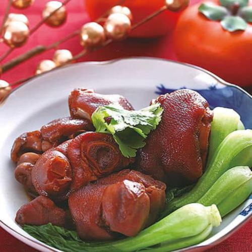 改良傳統家常料理,豬腳先以油煎方式去油後以台南柴燒手工黑糖加上主廚特製滷包滷製,口味甘醇不膩口,餘韻帶有獨特的黑糖碳焙香。