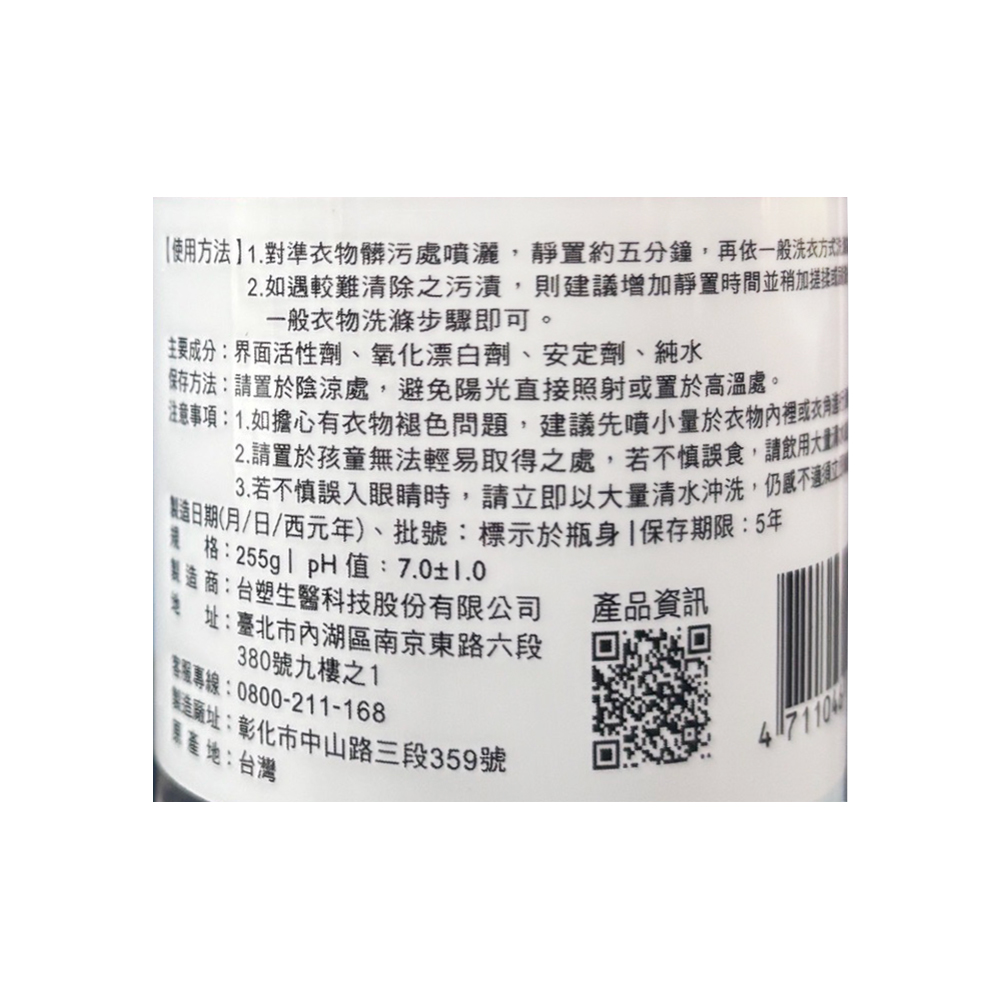 • 【使用方式】對準衣物髒污處噴灑,放置約5分鐘,再使用一般洗衣方式洗滌衣物即可