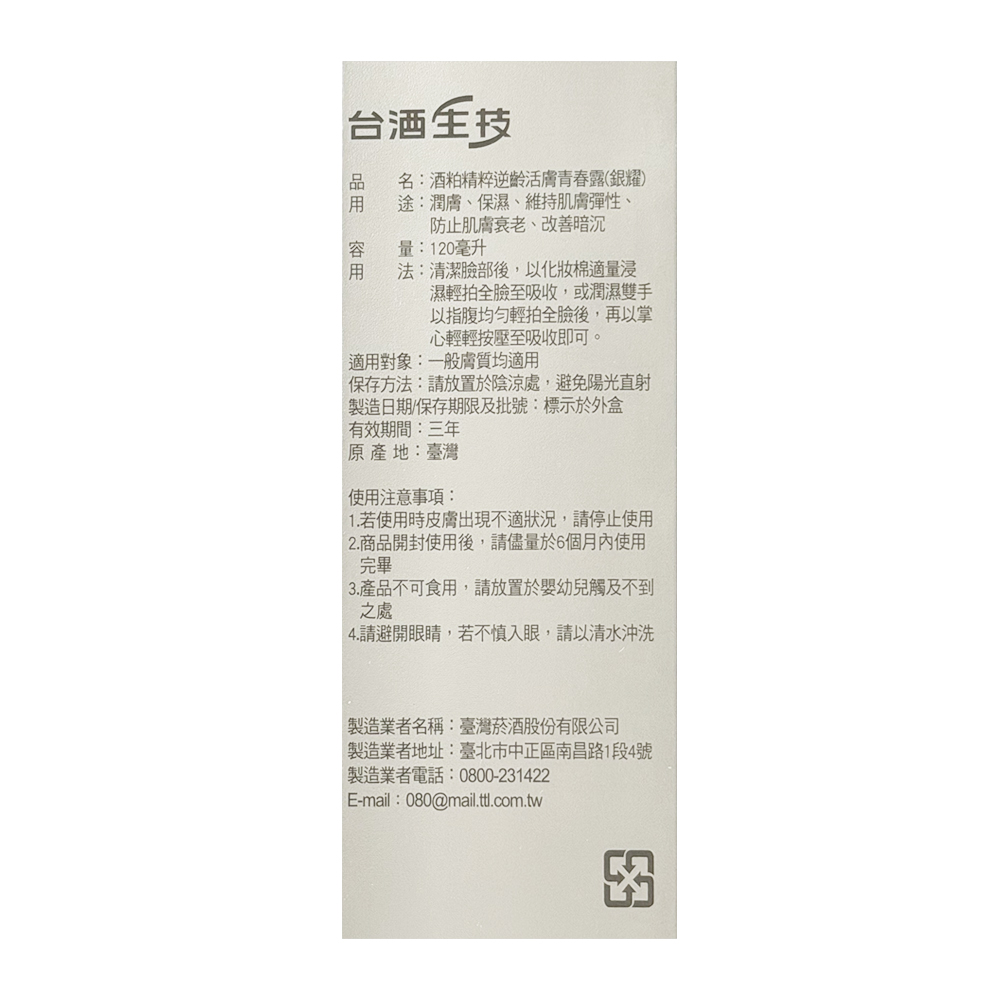 免運 【台酒生技】酒粕精粹逆齡活膚青春露 (銀耀) 全新升級版