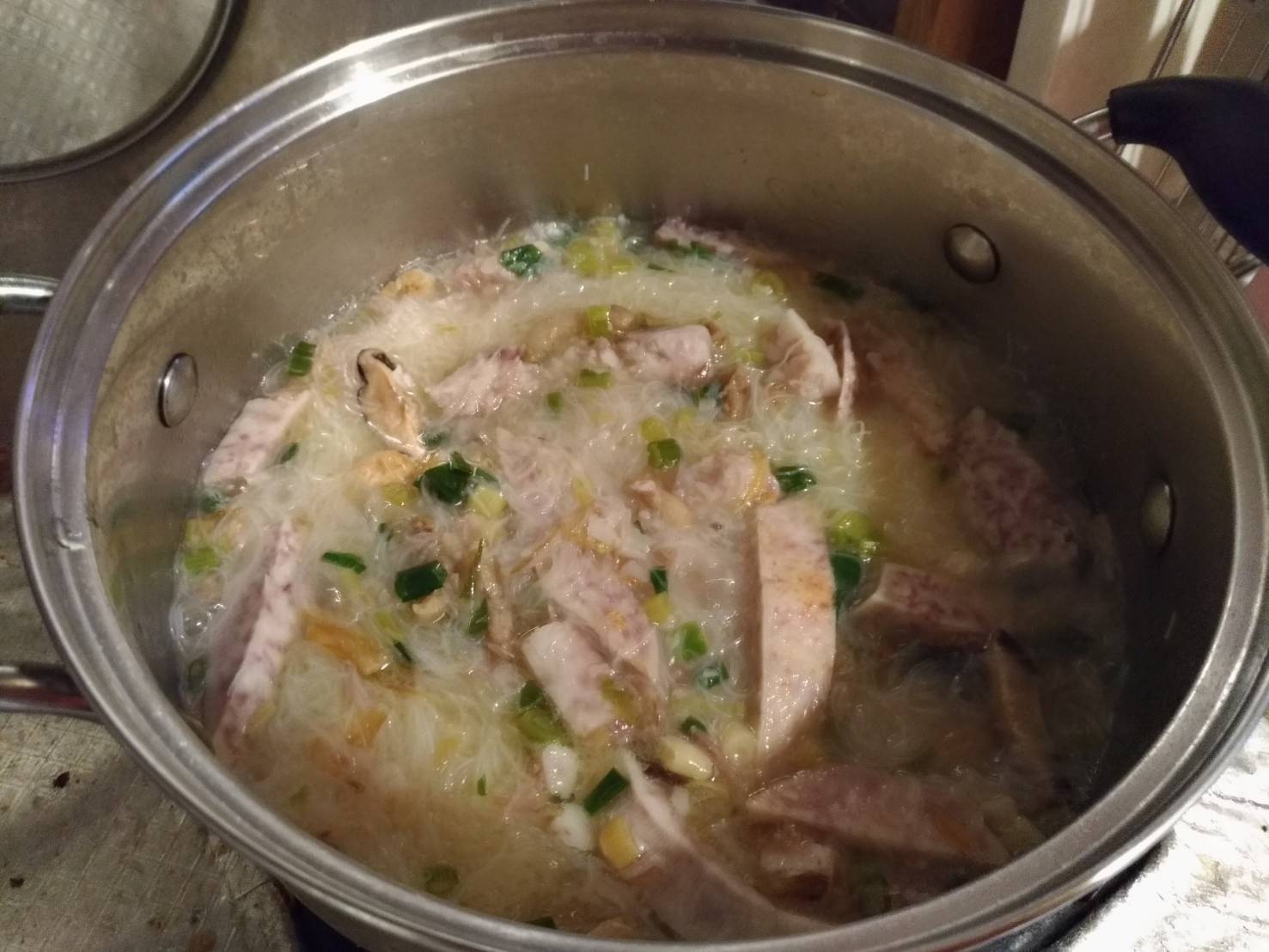 依順序把食材放入米粉吸附蒜苗芋頭的配料讓湯頭很夠味超推