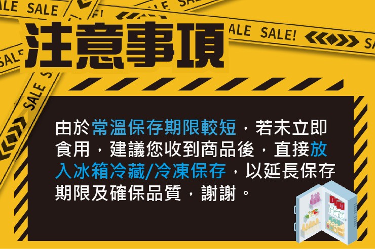 二、【生鮮冷凍食品/易腐壞食品】依法並不享有7天鑑賞期,依據「通訊交易解除權合理例外情事適用準則」,生鮮冷凍食品/易腐壞食品不適用「消費者保護法」第19條第1項解除權,除商品本身瑕疵或運送過程而造成的損毀,【請於到貨24小時內,並拍照存證2至3張圖】,才可申辦退換貨。