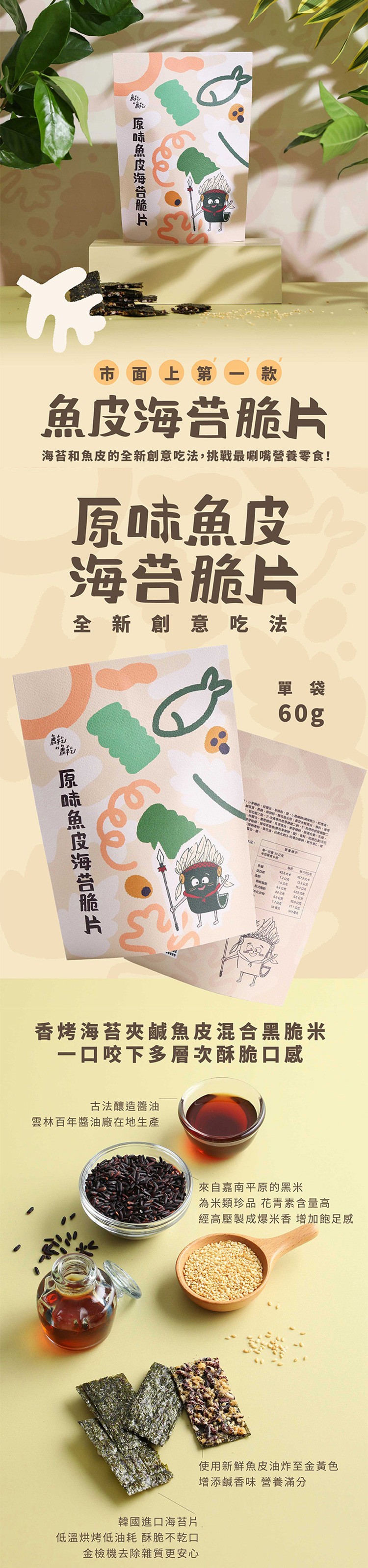 免運 【魚乾的魚乾】原味/川味 魚皮海苔脆片