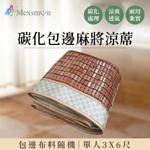 免運 【Mexsmon 美思夢】碳化包邊三明治麻將涼席-包邊布隨機單人款(3X6尺)