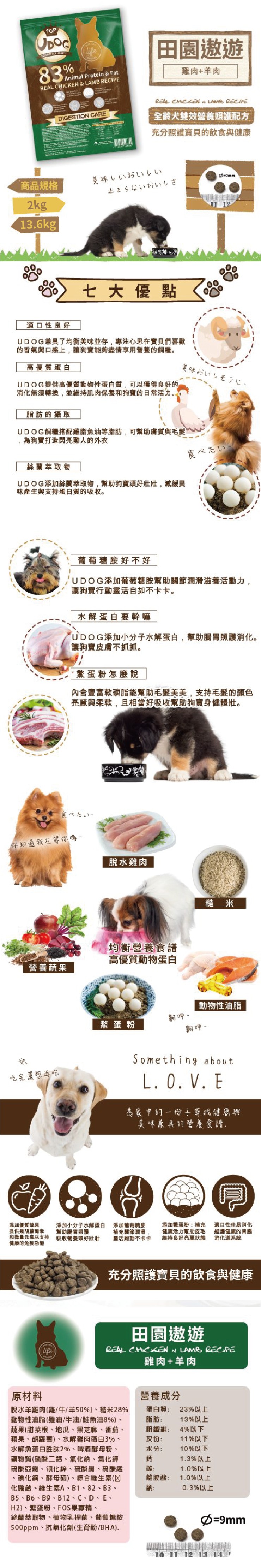 免運 【UDOG】全齡犬田園遨遊雙效營養照護配方(雞肉+羊肉)有穀狗飼料 13.6kg/袋
