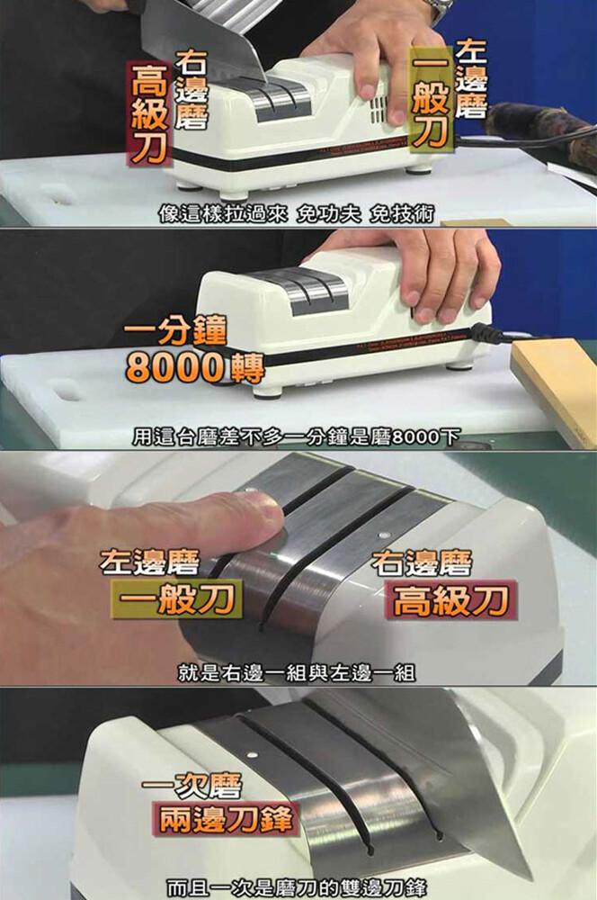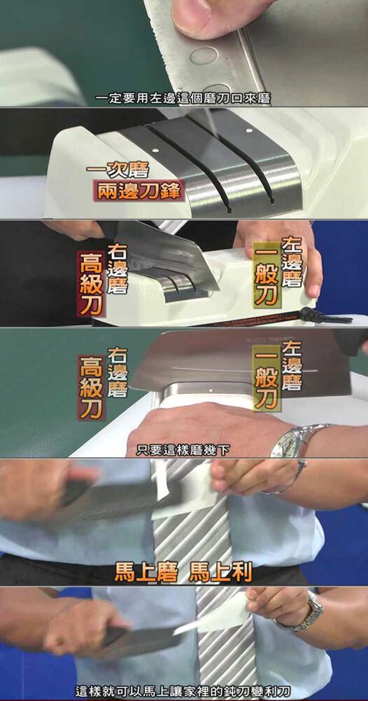 3. 左邊磨剁刀、厚刀、一般刀具。右邊磨薄刀、高級刀、陶瓷刀。