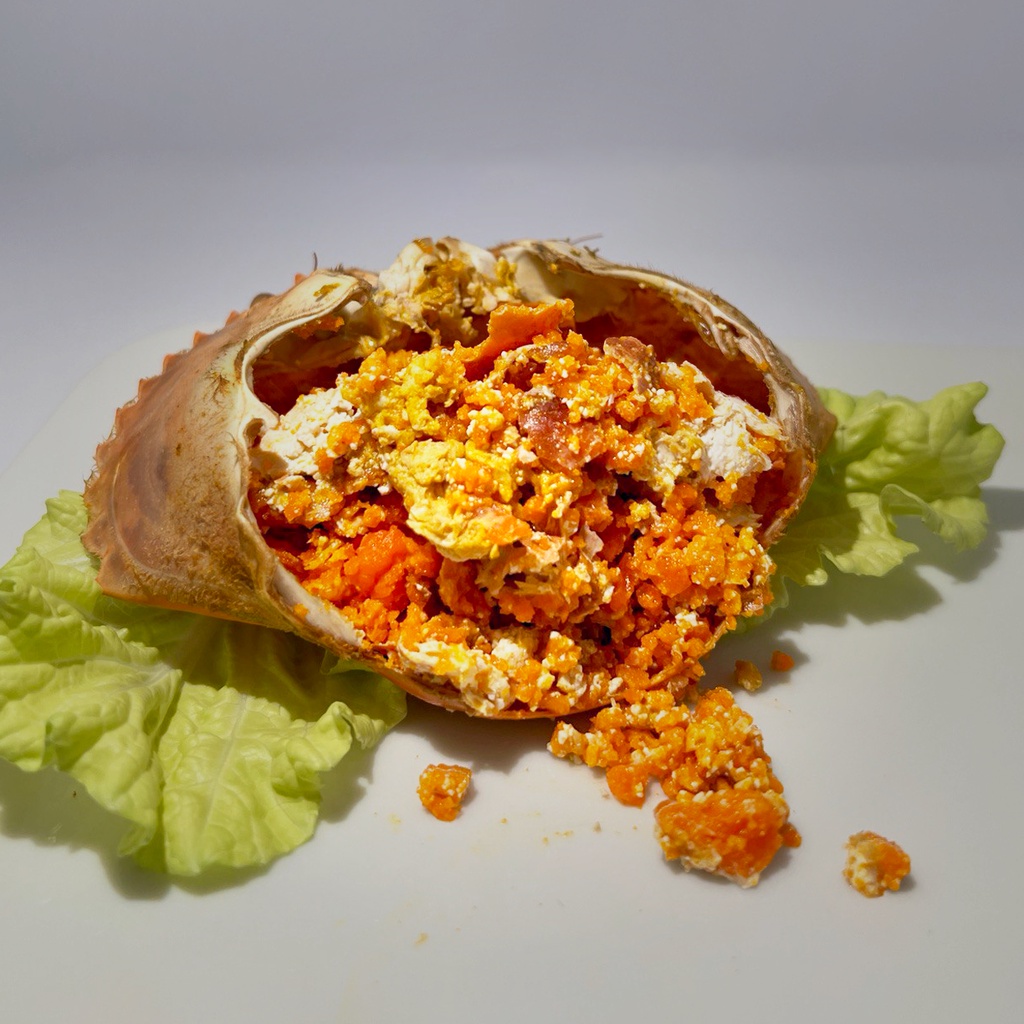 至於蟹卵,並不是顆顆分明、橘紅色的才是蟹卵,顏色隨著熟度不同從墨綠~橘紅色都屬於蟹卵喔!