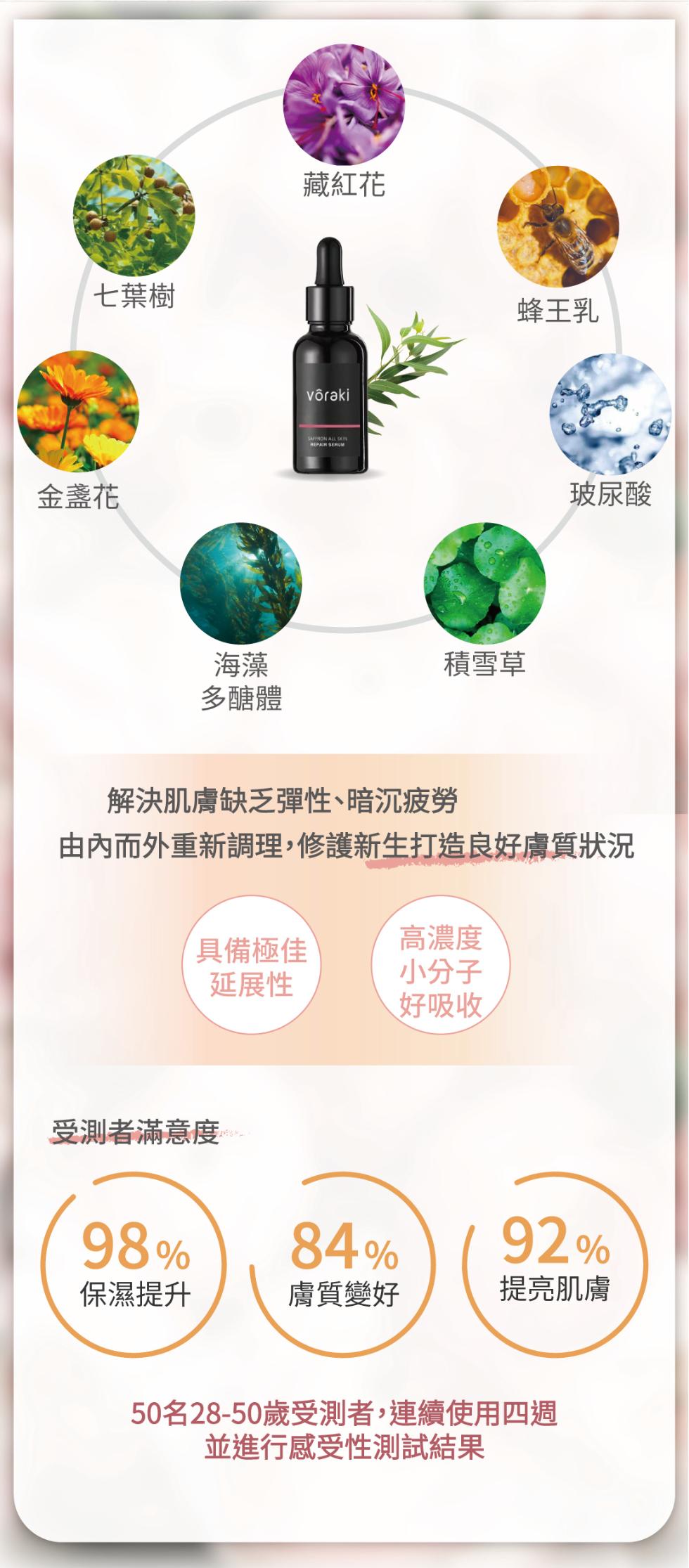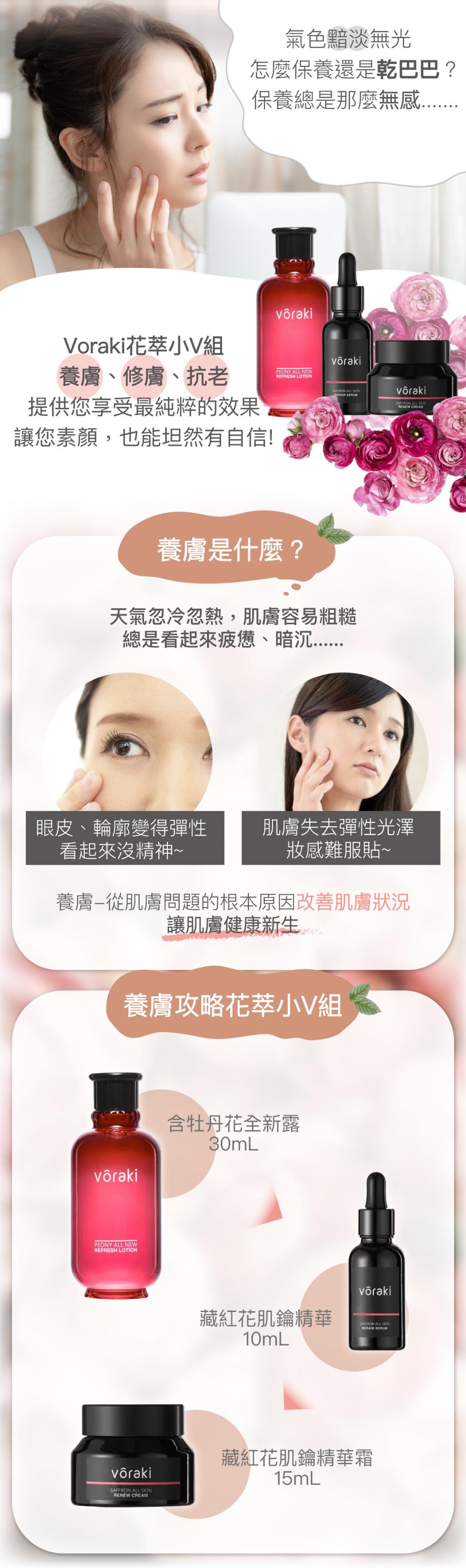 免運 【VORAKI】花萃小v組(牡丹花全新露30mL、藏紅花肌鑰精華10mL、藏紅花肌鑰精華霜15mL)