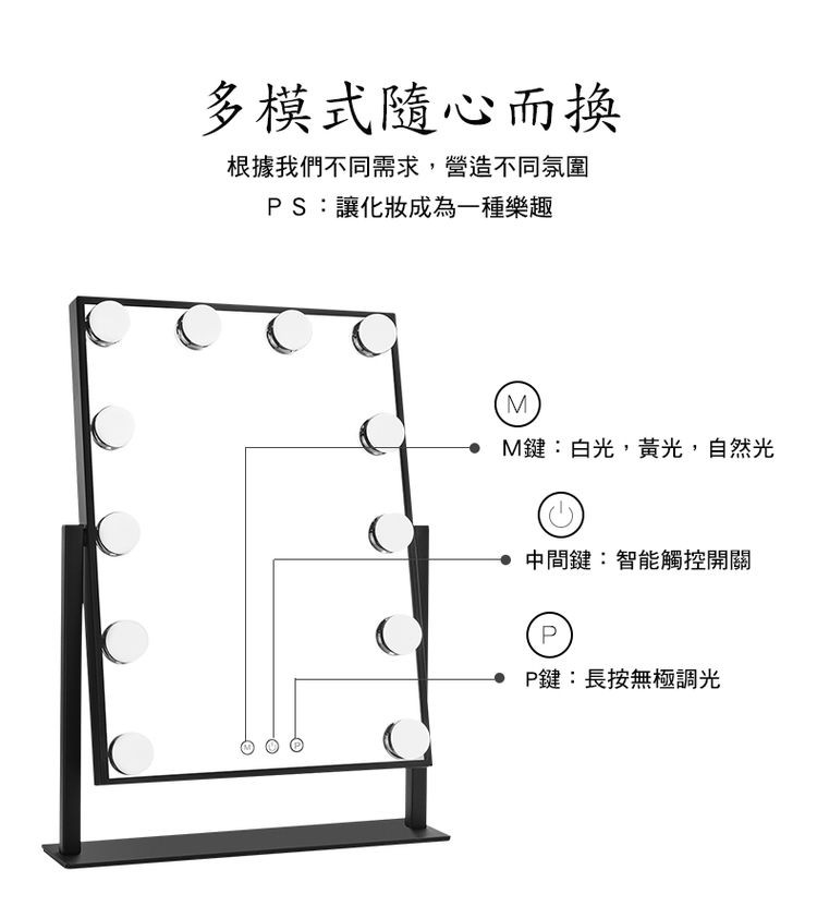 免運 【輝鴻】巨星亮感三色調光化妝鏡[PZF1502]