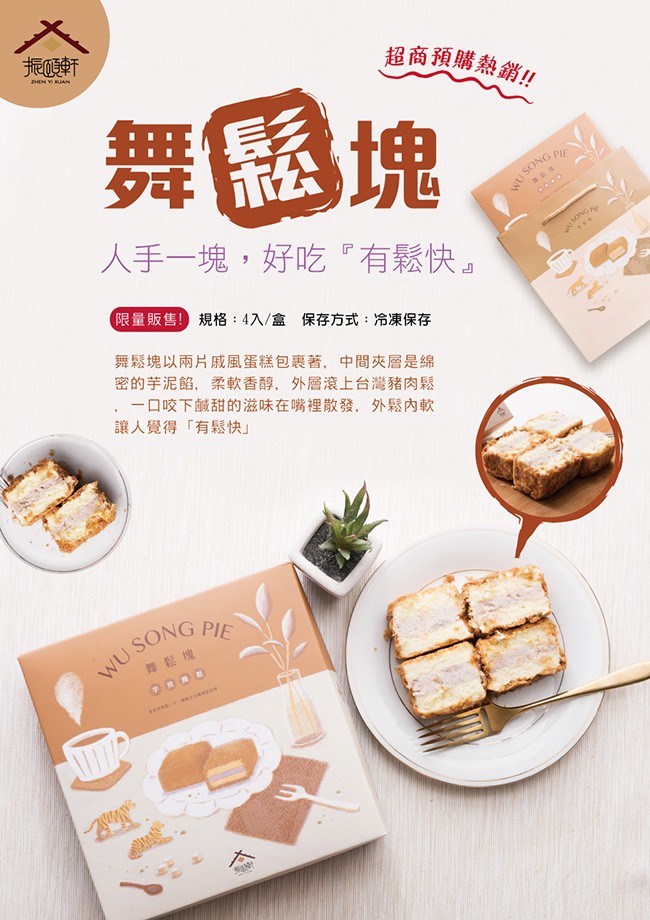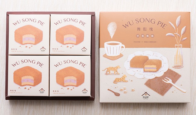 舞鬆塊以兩片戚風蛋糕包裹著,中間夾層是綿密的芋泥餡,柔軟香醇