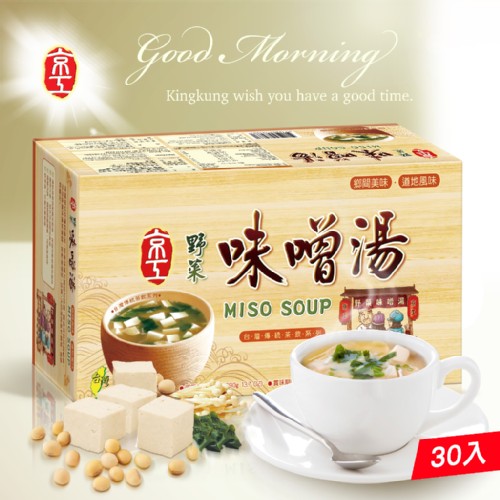 嚴選田舍赤味噌,搭配塊狀豆腐及海帶芽,熱水沖泡即可飲用。