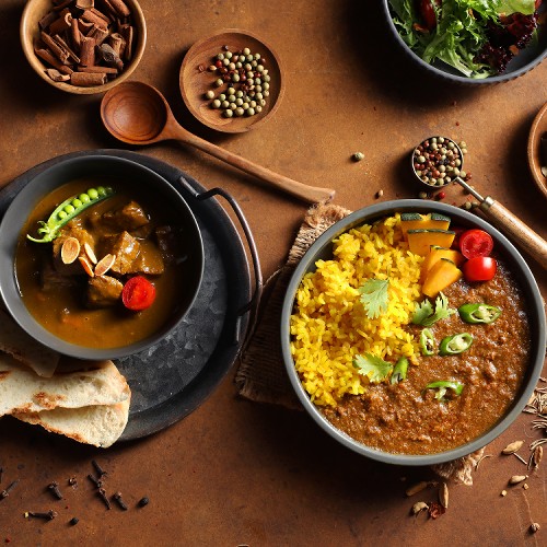 魔法乾咖哩-選用爆香甜度16度切丁洋蔥與CAS豬肩絞肉翻炒至交融相浸,加入黃金比例辛香料熬煮36小時,細工提煉溫柔敦厚的味覺美學。咖哩乾式吃法,將風馳千里的氛香濃郁全封存於方寸天地!(不含白飯薑黃飯、蔬菜及其他配料)