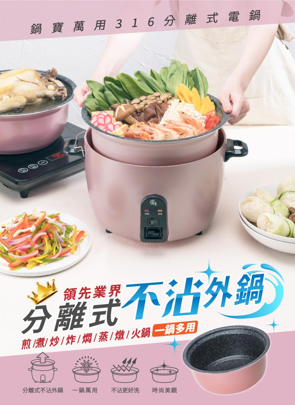 免運 CookPower鍋寶 萬用316分離式不沾電鍋-8人份-玫瑰金 茶花粉 星辰藍