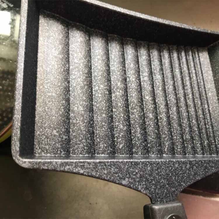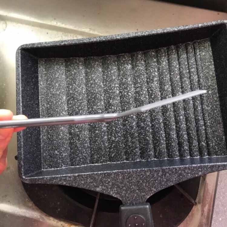 ✘勿使用鐵鍋鏟、鐵刷、鋼絲球,以延長使用壽命。