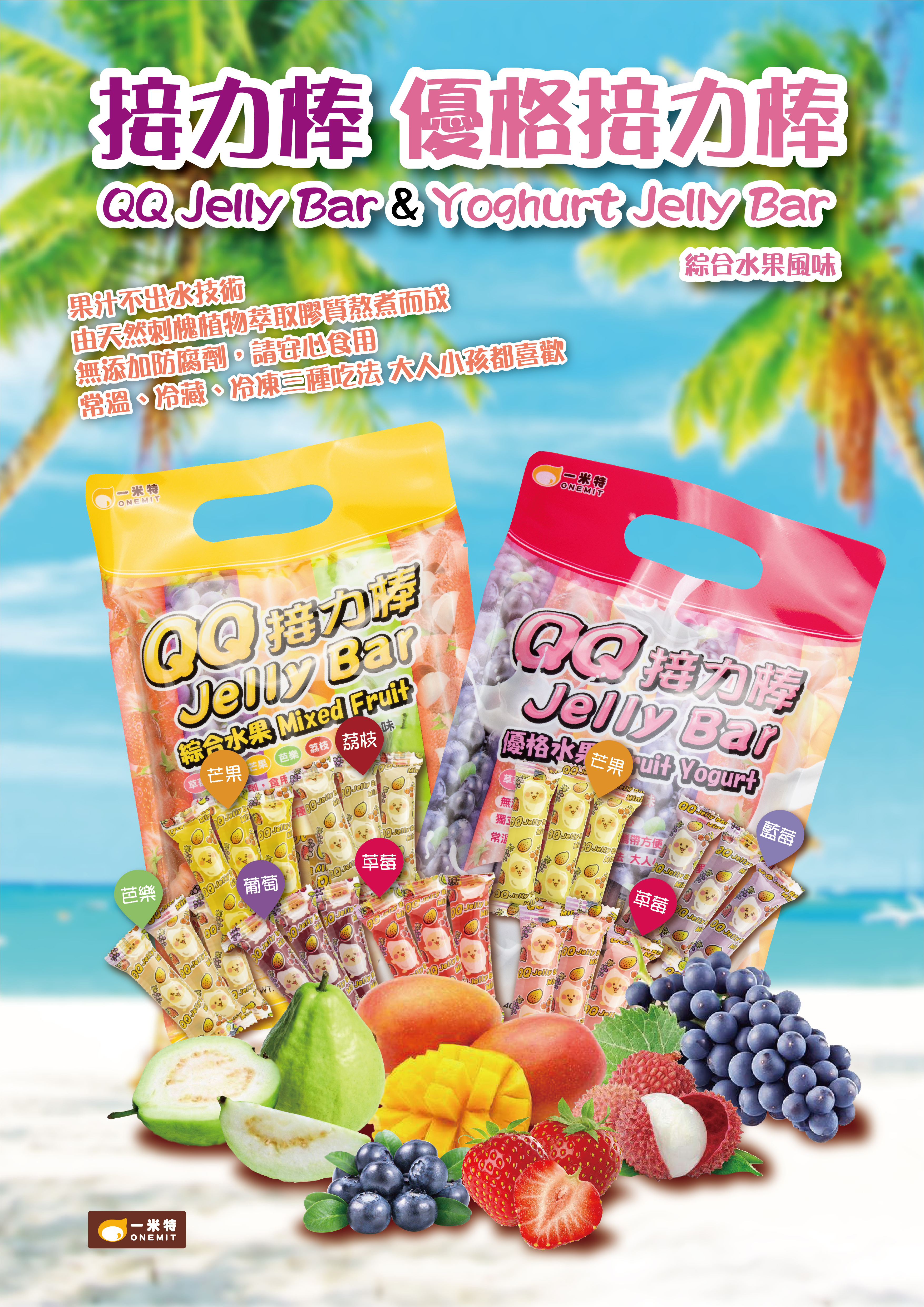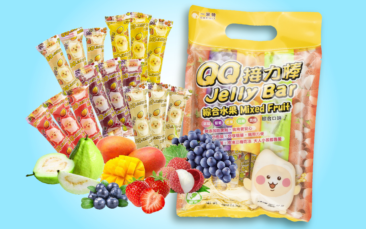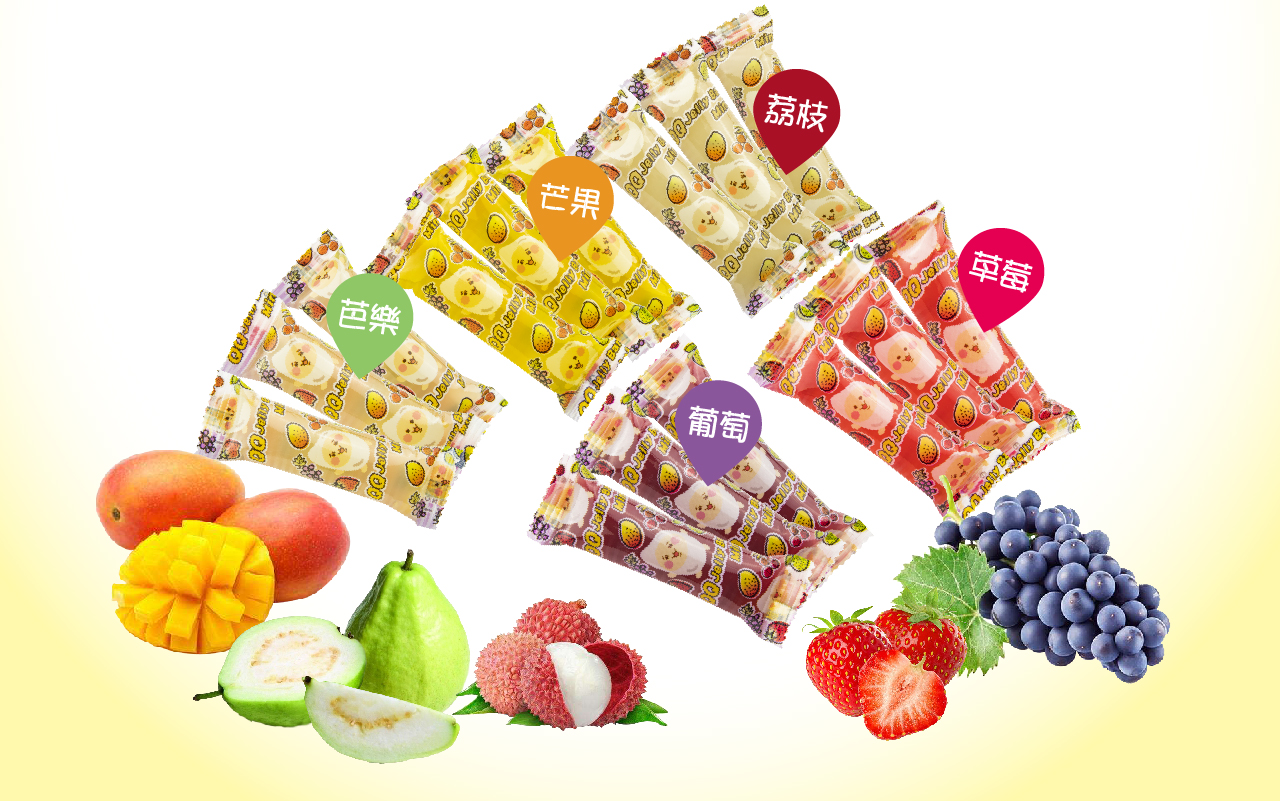 - QQ果凍條-綜合水果口味(草莓、葡萄、芒果、荔枝、芭樂)