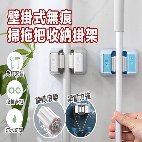 無痕壁掛掃拖把收納掛架,給家中的打掃工具一個更好的家,免釘免鑽,操作方便,滾輪卡扣,相容多種掃把、拖把,加厚材質,防水防潮,承重力好,經久耐用,家中收納的好幫手,讓居家環境更整潔!