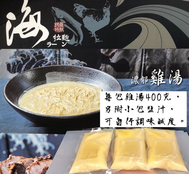 餐廳直送,FB搜尋"海拉麵",本賣場只賣雞湯,