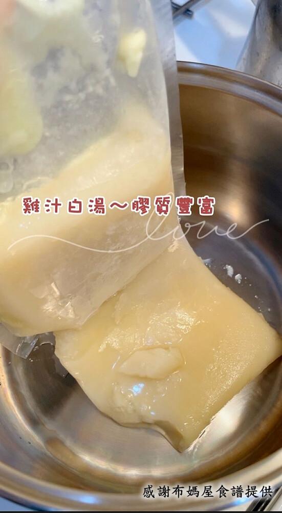 成分 : 純雞湯不含料(熬煮食材 :雞骨、雞腳、雞肉、馬鈴薯、蘋果、洋蔥、甘蔗、蔥、薑)。