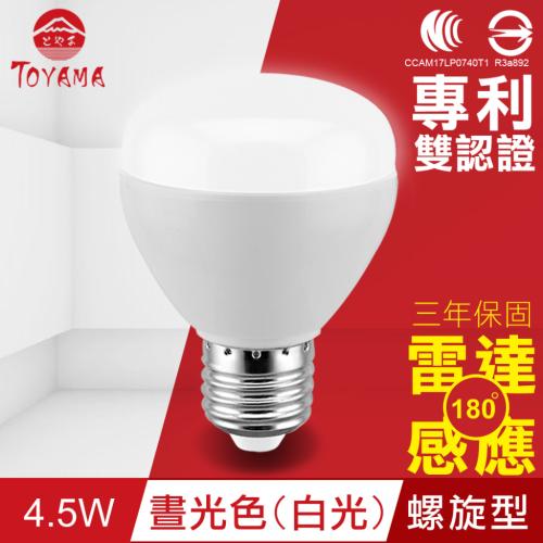 免運 【TOYAMA特亞馬】LED雷達感應燈4.5W E27螺旋型(晝光色(白光))