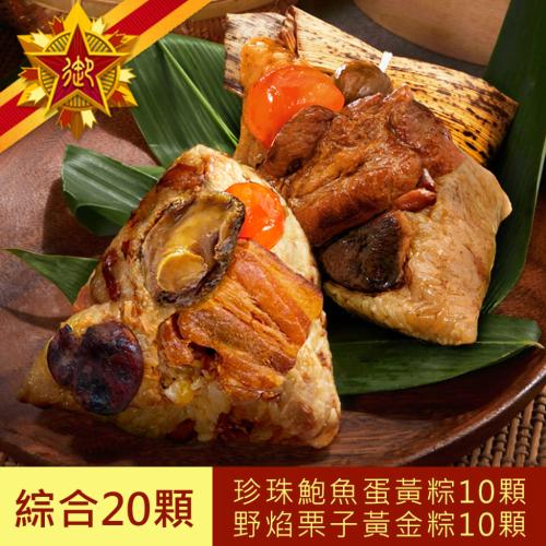 免運 【五星御廚】養身宴組合A 野焰栗子黃金粽x10顆+珍珠鮑魚蛋黃粽x10顆