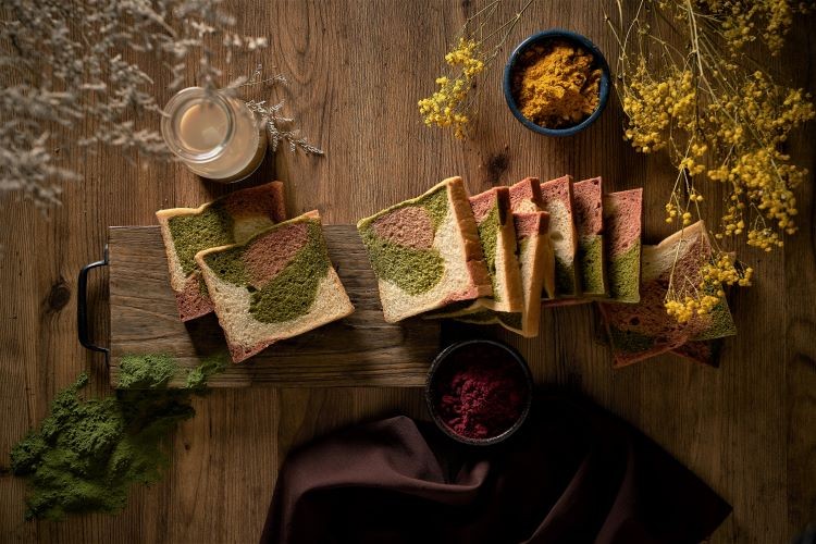 產品特色:無油、無奶、無蛋、無任何化學添加的手作麵包,堅持以36小時低溫老麵發酵,再加上多種自然食材以及高營養價值的帶皮豆泥,完全沒有使用添加物,迷彩吐司的口味是使用紅藜麥亞麻籽/甜菜根蔓越莓/抹茶大豆吐司所制成,絕無僅有的迷彩全豆吐司,滿足您視覺上的衝擊挑起您的食慾,享用一片卻同時擁有三種獨特美味!澱粉量較一般吐司降低40%,同時有更多的植物蛋白和膳食纖維,全素也能享用.