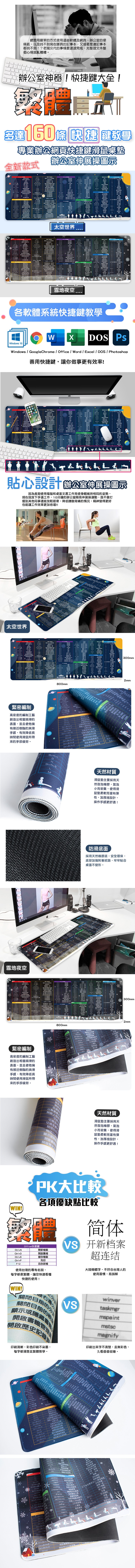 滑鼠墊 桌墊 大滑鼠墊 滑鼠桌墊 快捷鍵桌墊 餐墊